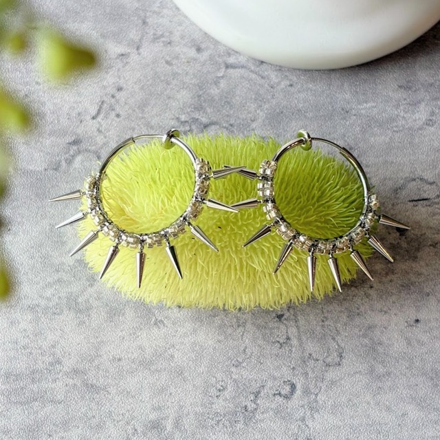 トゲトゲフープ イヤリング(ノンホール/バネ式)|ロジウムカラー スパイクデザイン 印象的 デザインイヤリング