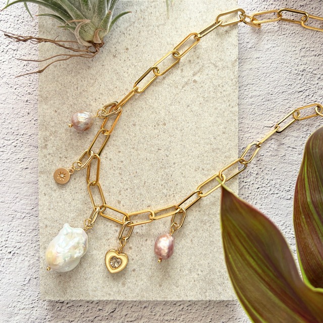 【誕生月チャーム】2way・3way バロックパール チェーンネックレス〈6月〉|淡水パール ゴールド サージカルステンレス