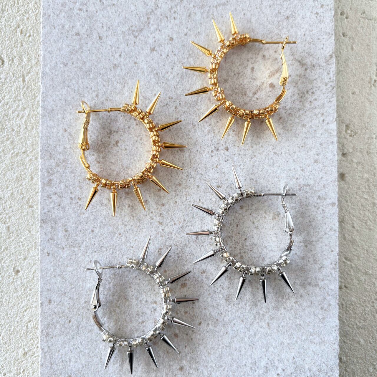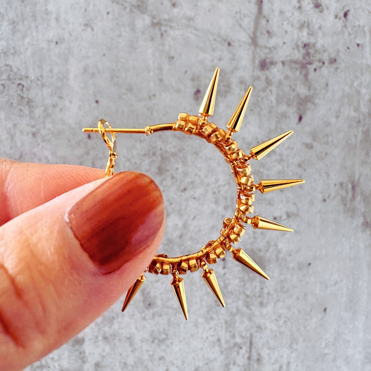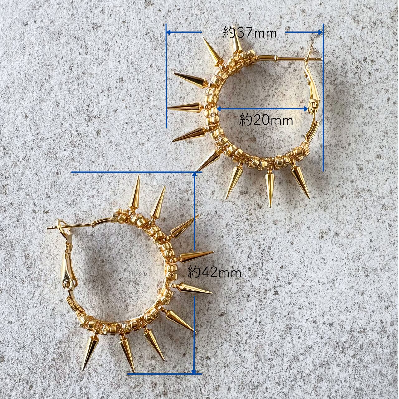 【金属アレルギー対応】トゲトゲフープ ピアス(キャッチレス/バネ式) |ゴールドカラー スパイクデザイン 印象的 デザインピアス