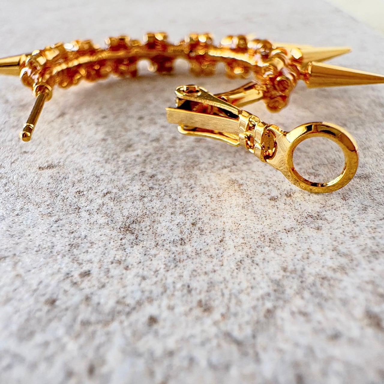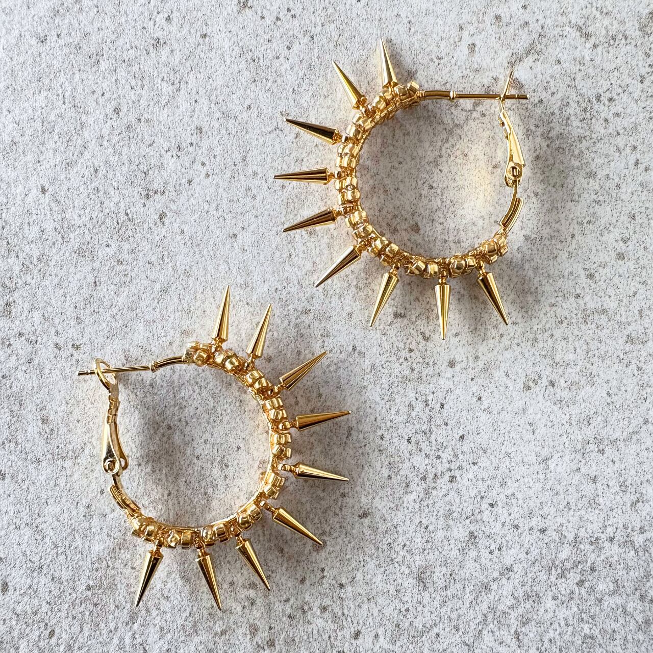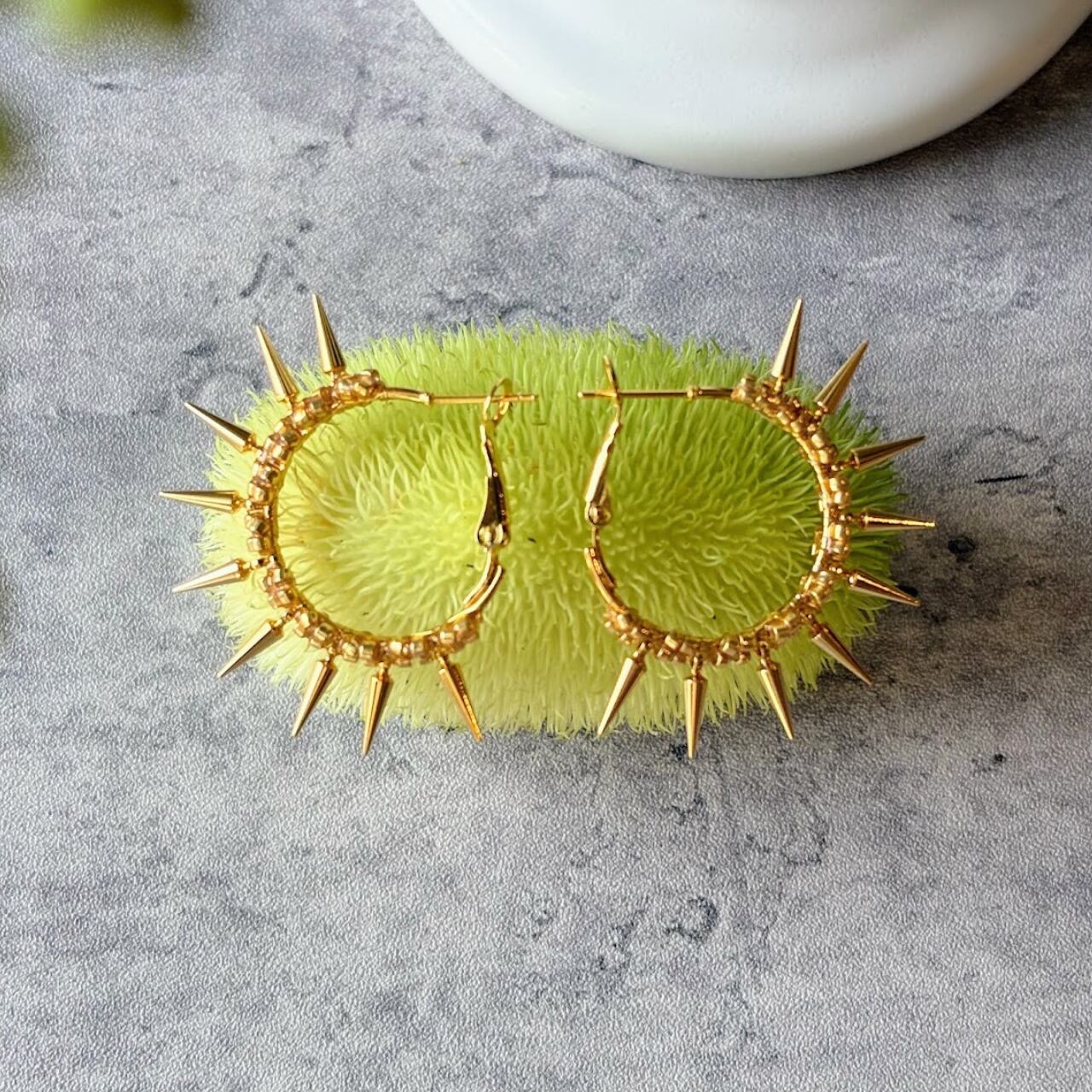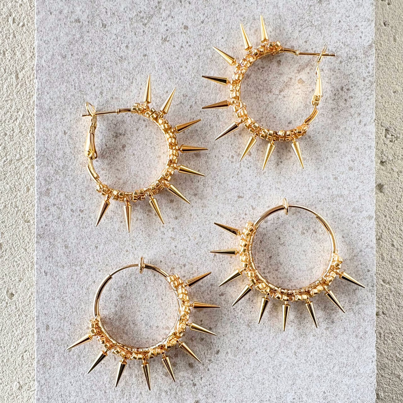 【金属アレルギー対応】トゲトゲフープ ピアス(キャッチレス/バネ式) |ゴールドカラー スパイクデザイン 印象的 デザインピアス