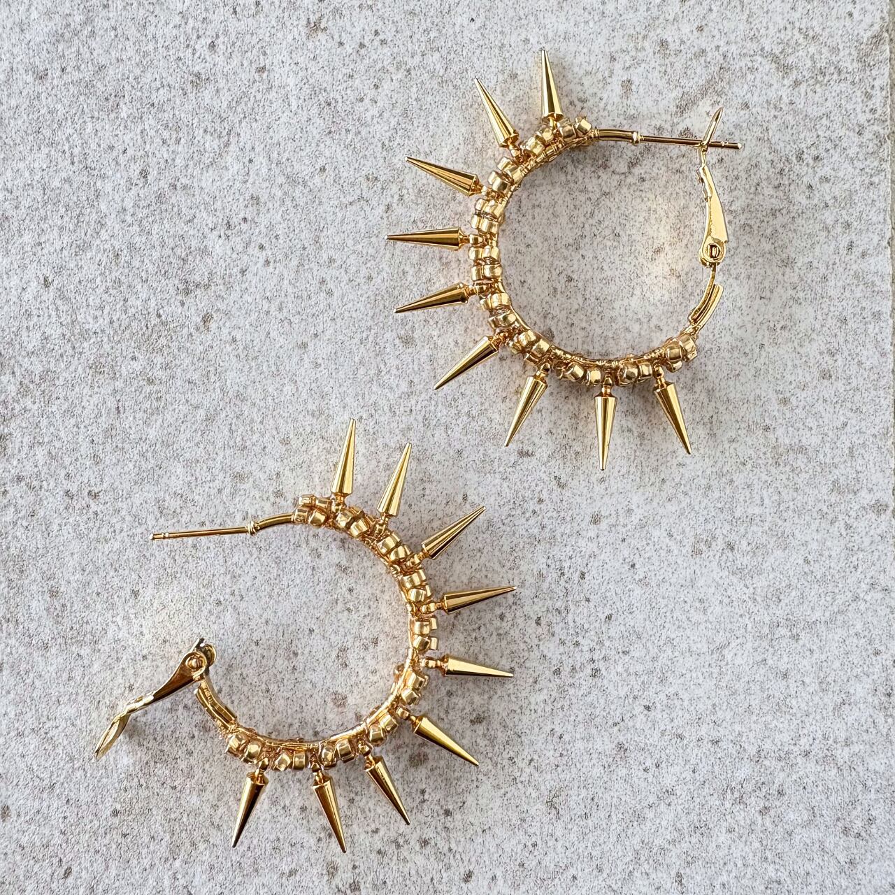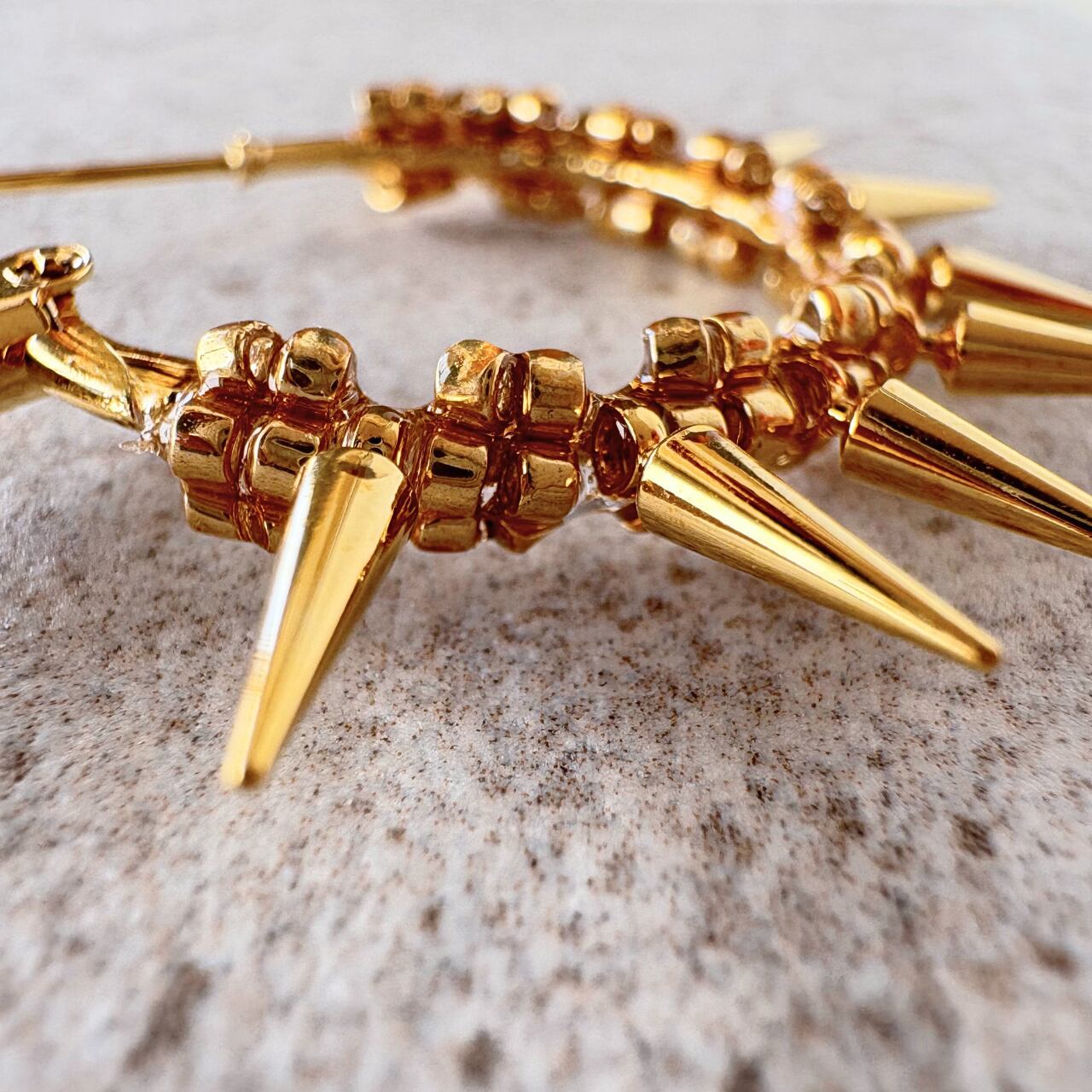 存在感のあるトゲトゲフォルムが魅力の『トゲトゲフープピアス (ゴールドカラー)』。