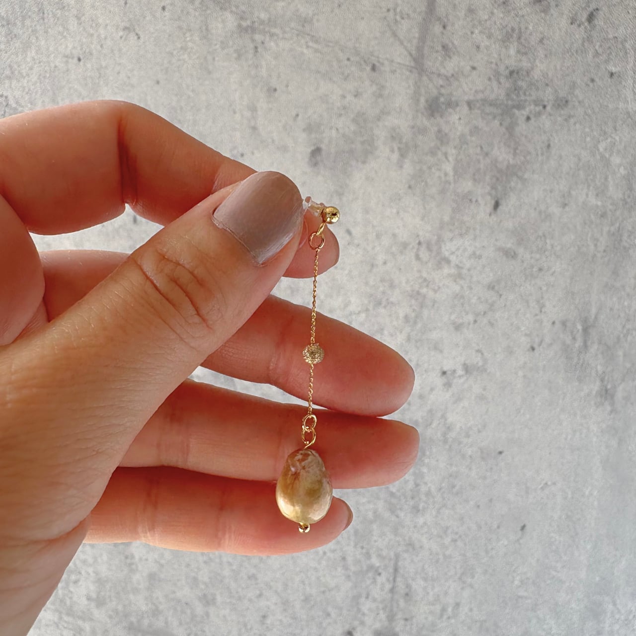 金属アレルギー対応のイヤリングベース(ノンホールピアスタイプ)を使用しており敏感肌方にも配慮した作りになっています。