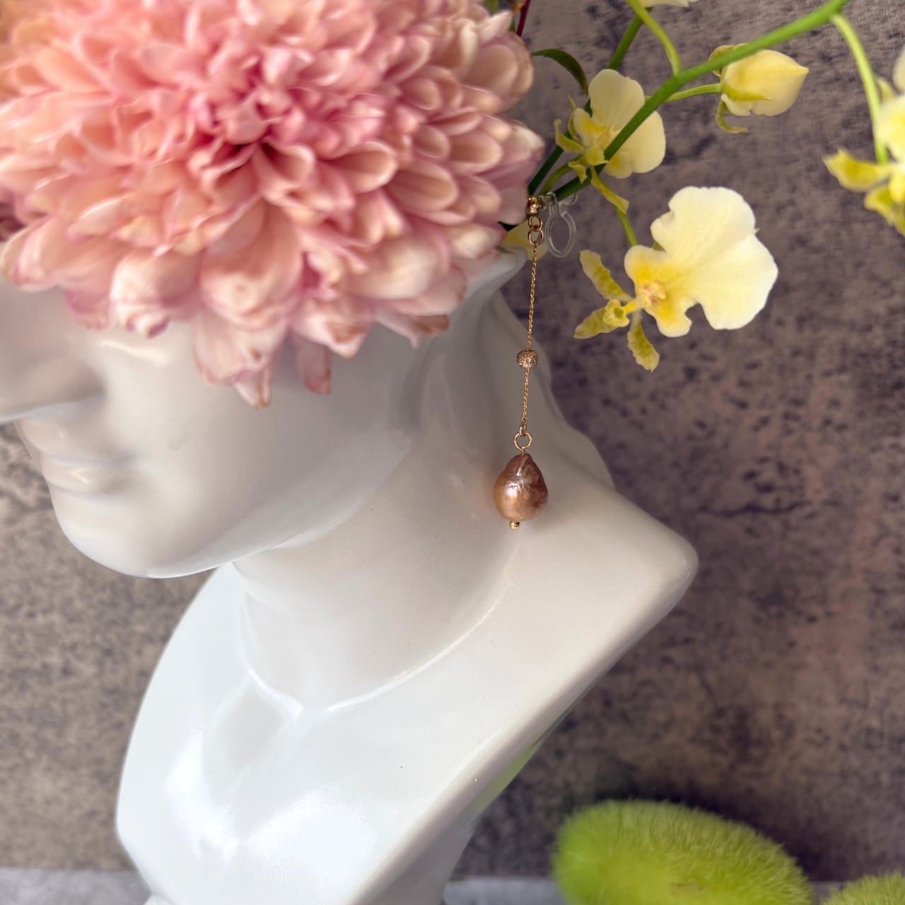 自然が生み出した個性豊かなバロックパールが耳元で揺れ動き、豊かな表情を演出します。