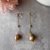 【金属アレルギー対応】遊色バロック淡水パール 揺れるイヤリング(ノンホールピアス)|サージカルステンレス 上品 エレガント