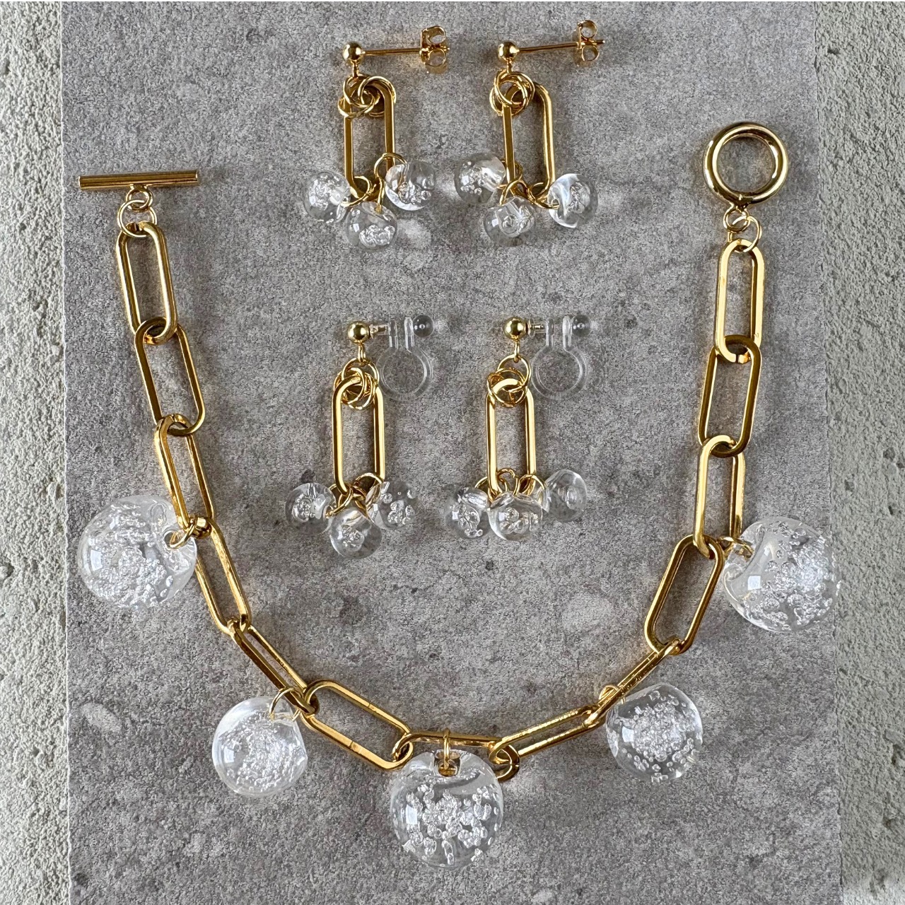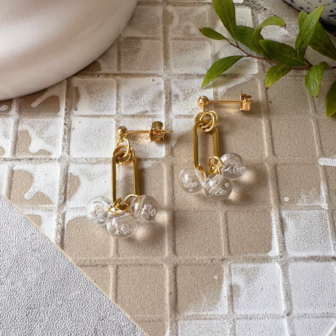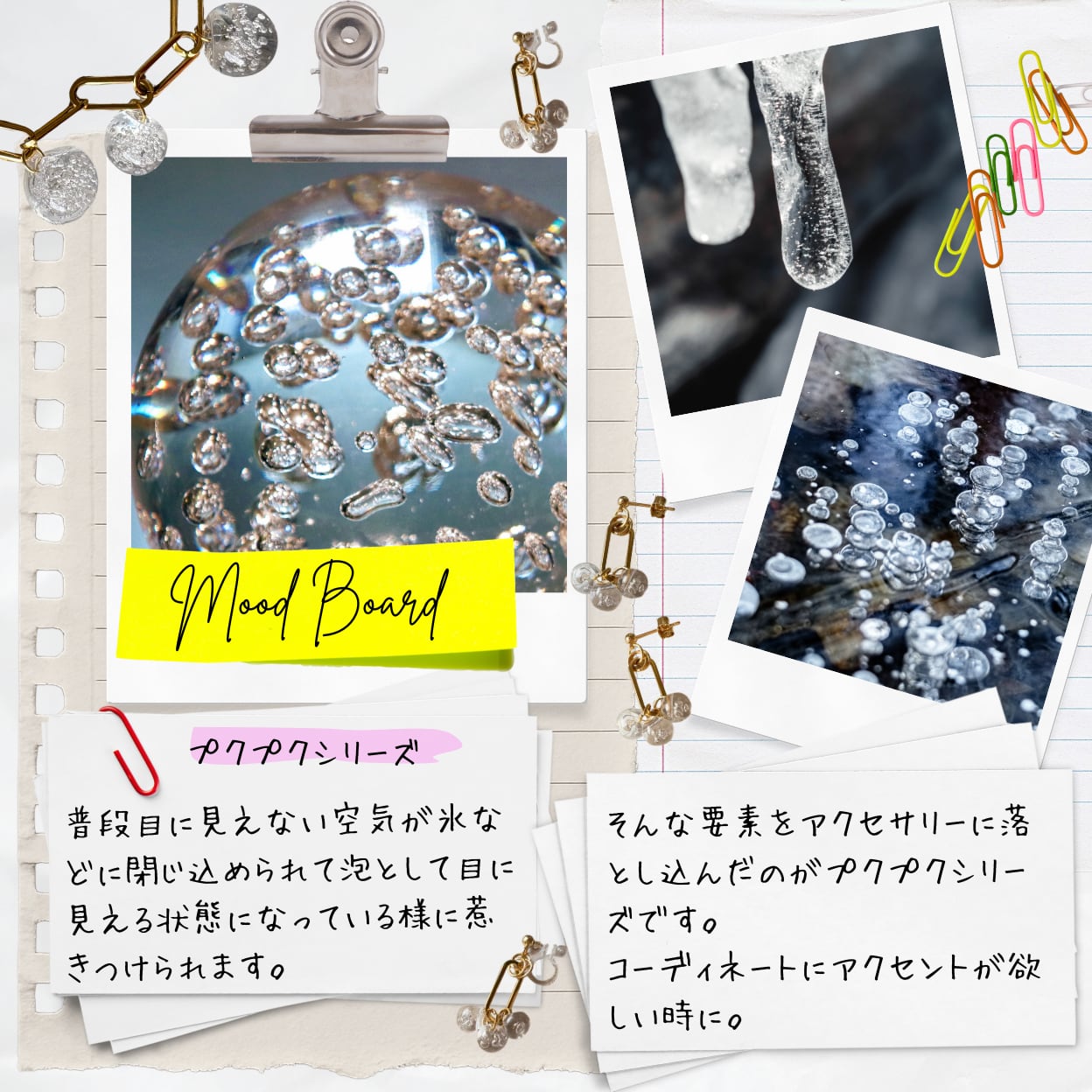 まるで小さな泡が時を閉じ込めたような、透明感あふれる『泡モチーフ プクプク泡のピアス』。
