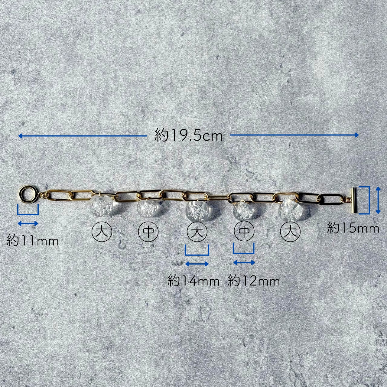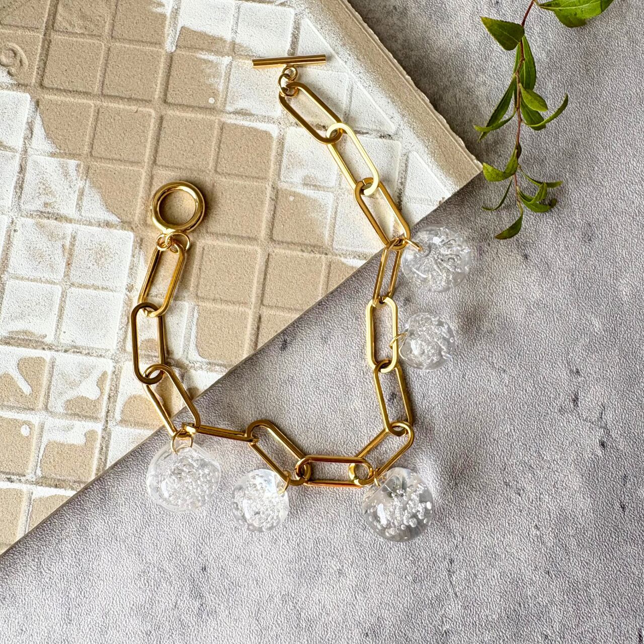 【金属アレルギー対応】 泡モチーフ クリアアクリル×ゴールドチェーン ブレスレット |サージカルステンレス 大人カジュアル