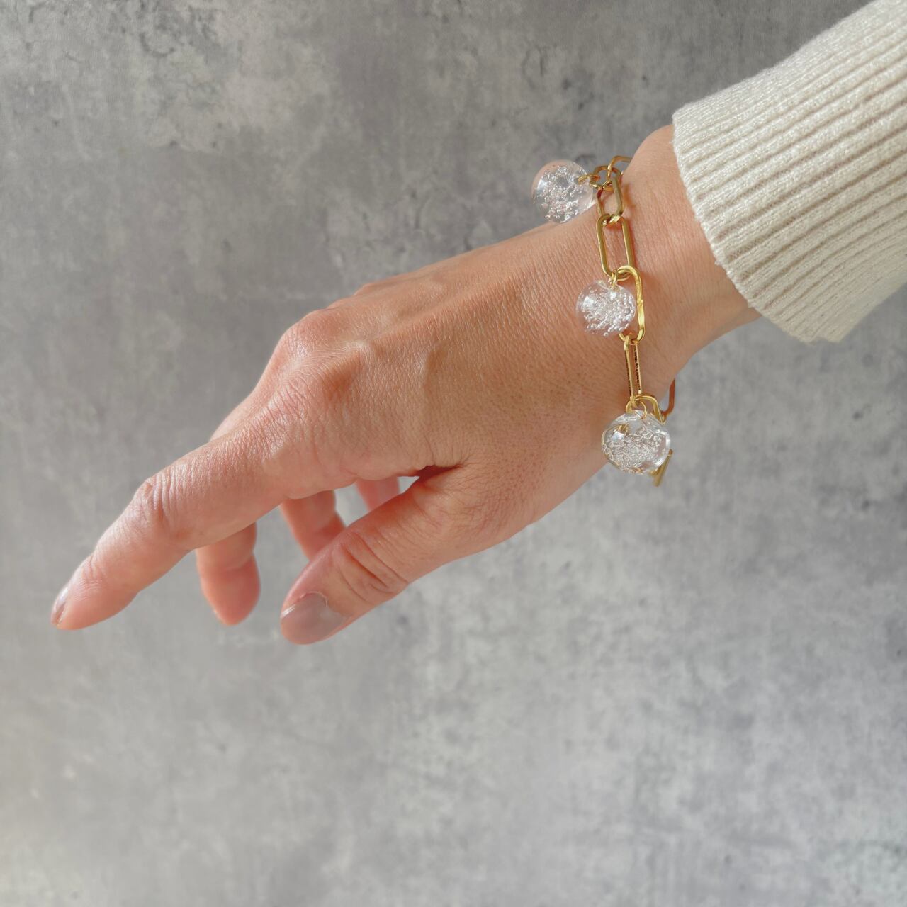 まるで小さな泡が時を閉じ込めたような、透明感あふれる『泡モチーフ プクプク泡のブレスレット』。