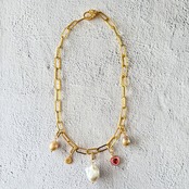 1本で何通りもの楽しみ方ができる万能なネックレスの『大粒バロックパール と12ヶ月チャーム(7月)のチェーンネックレス』。誕生月のお守りとして身につけられる、12ヶ月チャームシリーズです。