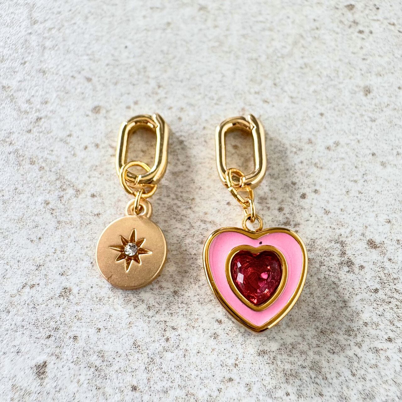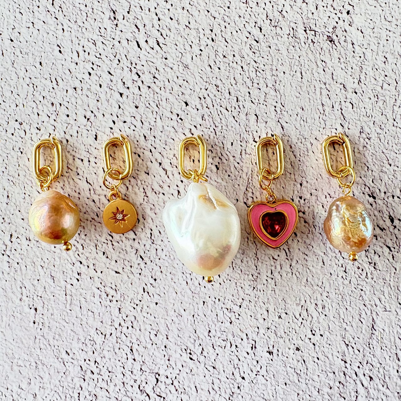 外したチャームをオプションのフープピアスまたはフープイヤリングにつけて使用することも可能です。