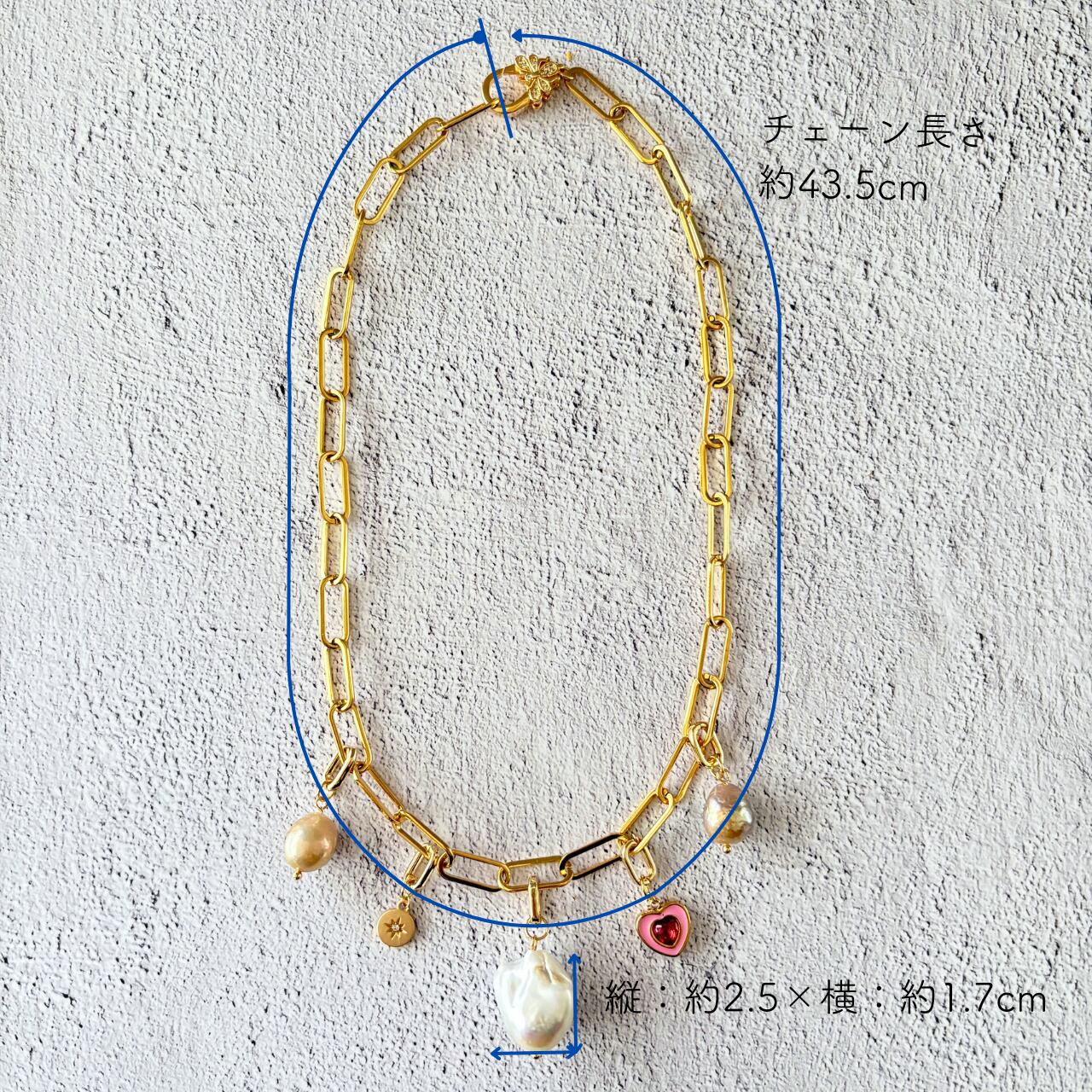 【誕生月チャーム】2way・3way バロックパール チェーンネックレス〈7月〉|淡水パール ゴールド サージカルステンレス