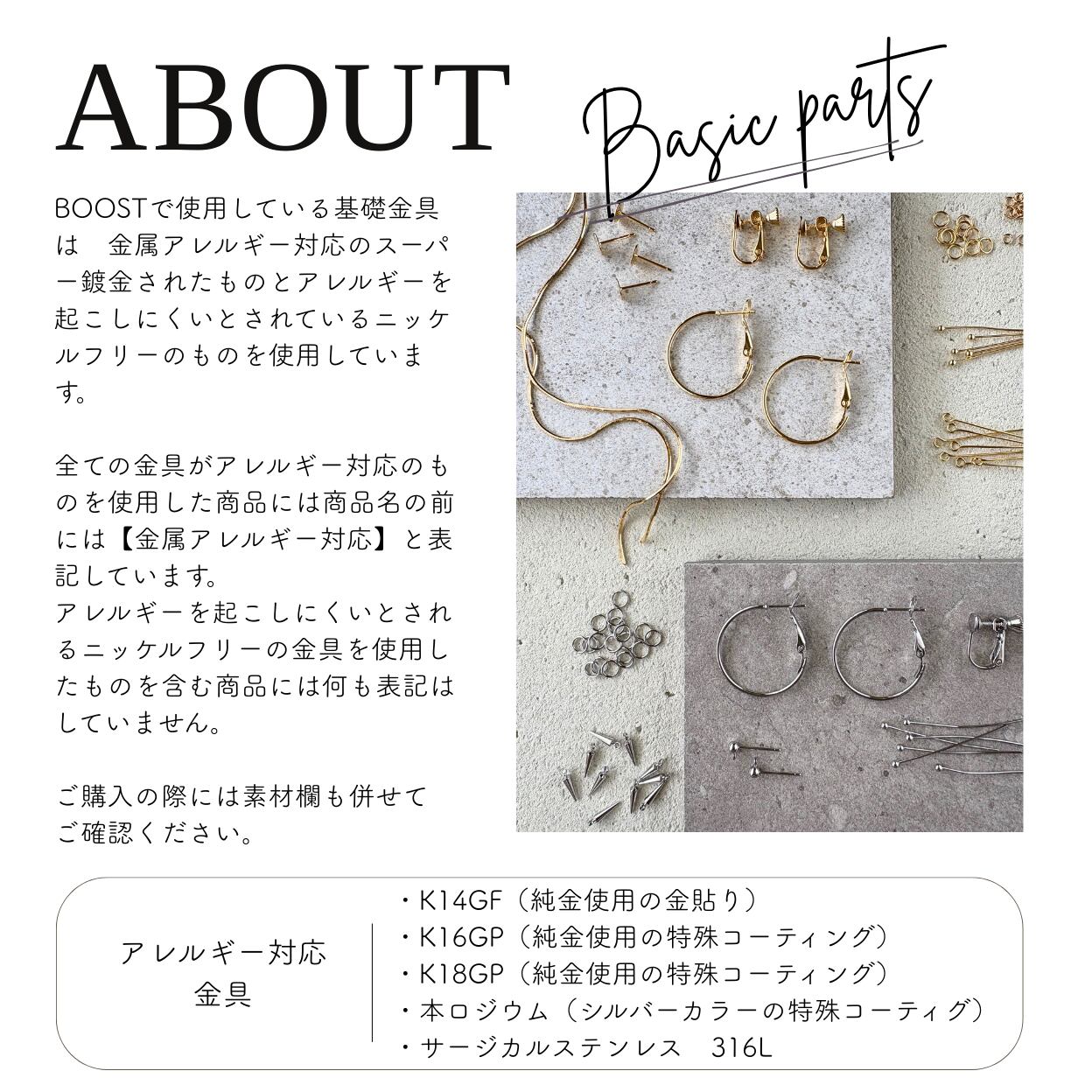 多面体のメタルビーズ以外の金具は金属アレルギー対応のものを使用しています。