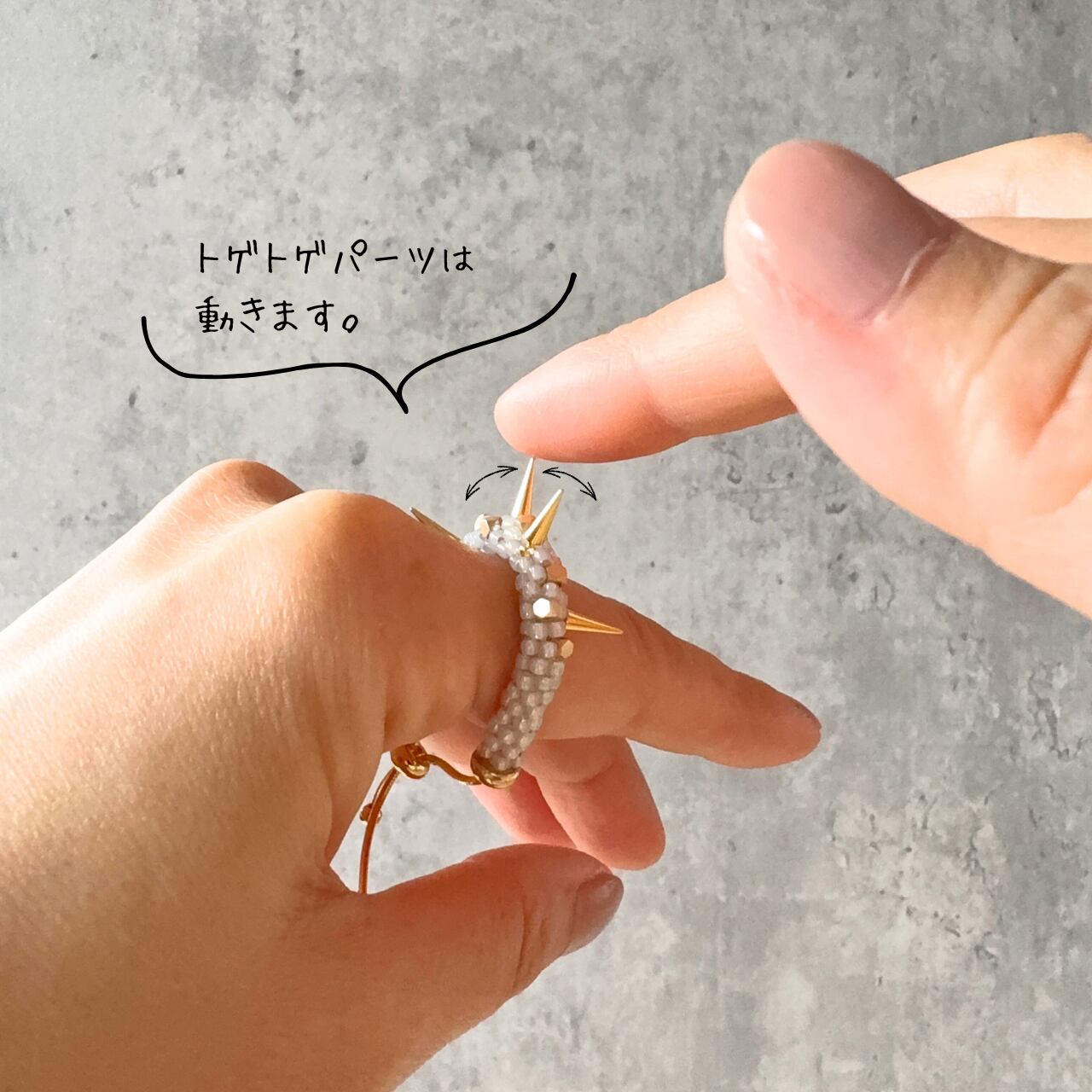 指に触れる部分には多面体のメタルビーズを配置していませんが、購入の際にはアレルギーをお持ちの方はお気をつけください。